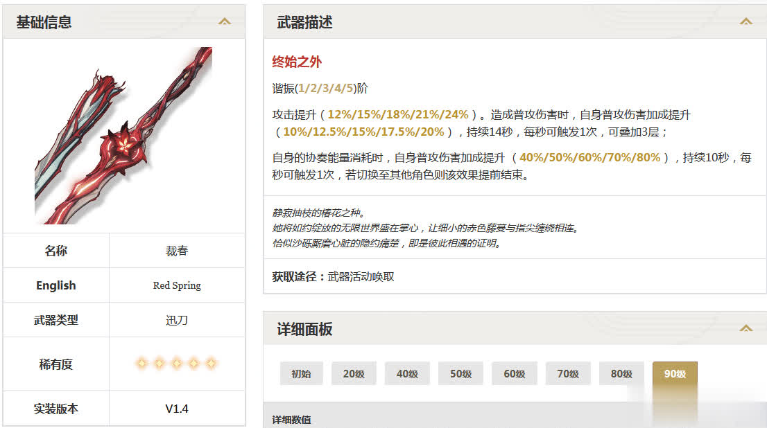 专武裁春,面板攻击587和24.3%的暴击率,攻击提升和可叠加三次的普攻伤害加成,协奏能量消耗还有高额的普攻伤害加成,椿输出基本都来自普攻伤害,专武的加成相当给力,资源不够没必要抽多命座,0+1要比1+0舒服的多。