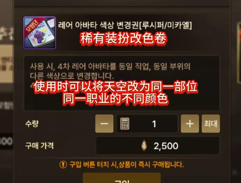 除此之外,还有一种方法可以获取这个白色款天三,那就是直接使用稀有装扮改色券,它就相当于天空染色剂。而这个天空染色剂需要2500个装扮点数才能兑换。其实,也只有土豪才有能力兑换得起,普通玩家就不要想了。不过,相比于白色的隐藏款天三,或许更多玩家还是更喜欢普通的金色天三吧,毕竟这才是最正宗、最霸气的天三了。