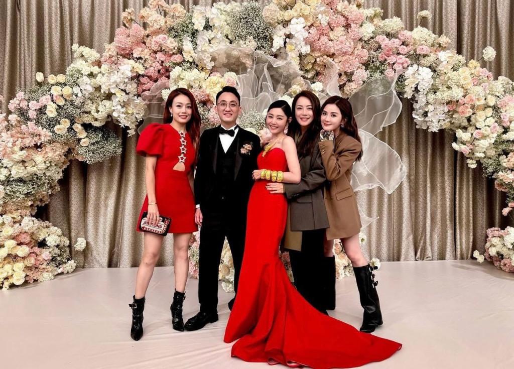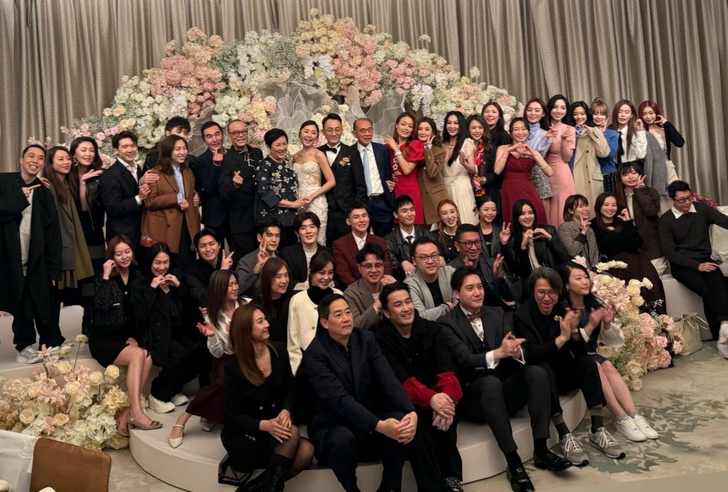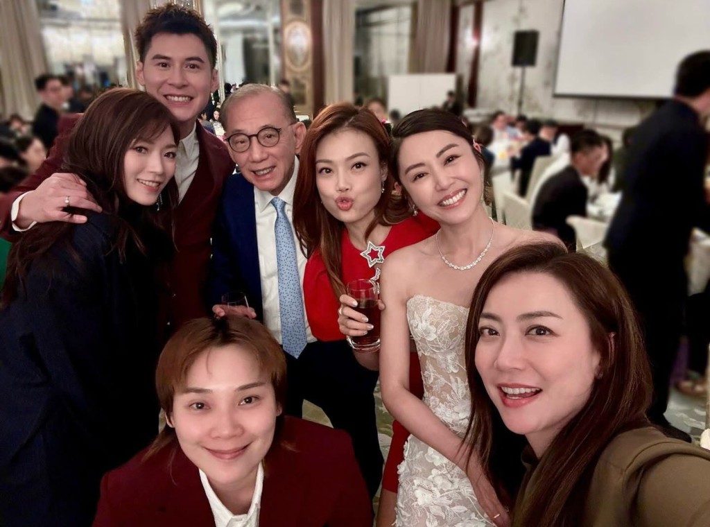 英皇艺人组团参加卫诗雅婚礼!老板娘站C位抓新娘手足见重视地位