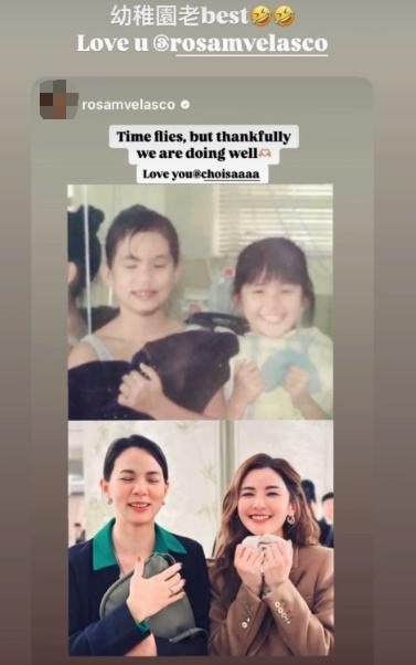 而卫诗雅结婚,当然少不了《破·地狱》团队,导演陈茂贤、朱栢康、韦罗莎、梁雍婷等一同到贺。韦罗莎在社交网贴出与新娘子的合照,当中她更遇上幼稚园同学阿Sa,并即时合照留念,照片中见二人重做当年幼稚园时合照的表情动作,韦罗莎其后将新旧合照拼在一起作比较,相当搞笑,阿Sa 亦有转发,并表示:“幼稚园老best。”