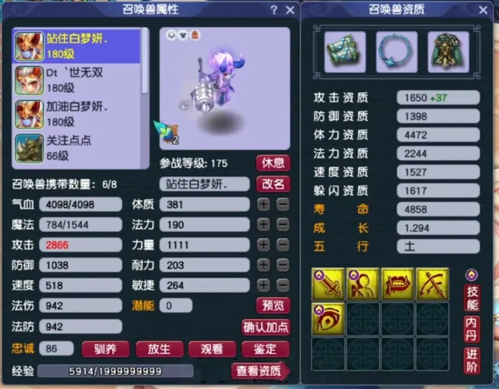 前排为140级的4物爆2速度属性,镶嵌了6-7锻星辉石。