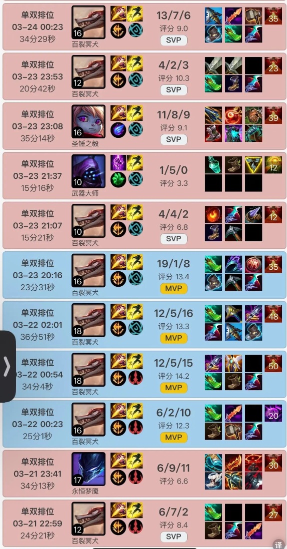 而通过战绩查询我们发现Junhao在排位中大量使用了狗匕,努力也是得到了回报。
