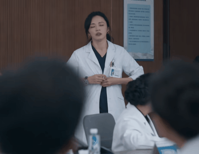 而新剧中姚晨饰演的乔杨也松弛感拉满,在会诊上提意见,一边系扣子整理仪表,一边像聊天一样,环视整个会议室表达看法,肢体动作相当自然。