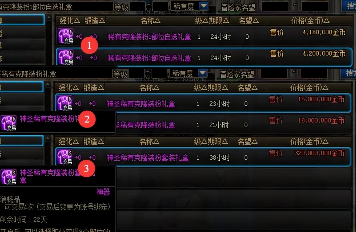 「3」“神圣稀有克隆装扮套装”,售价3.2亿金币!