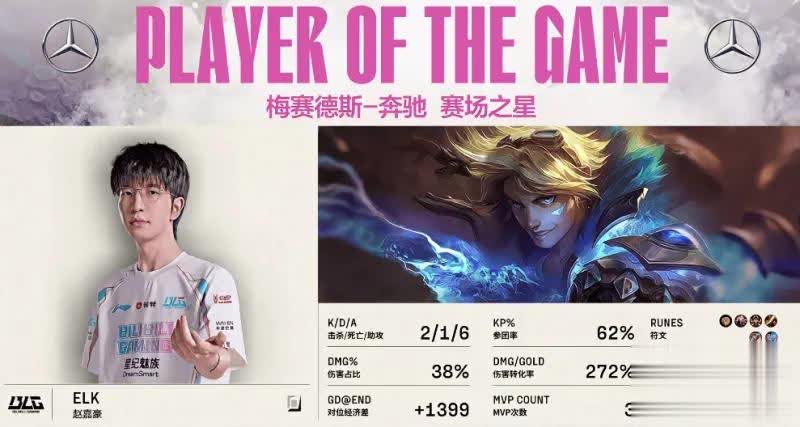 BLG选用:Bin约里克、Beichuan赵信、Knight岩雀、Elk伊泽瑞尔、ON卡尔玛