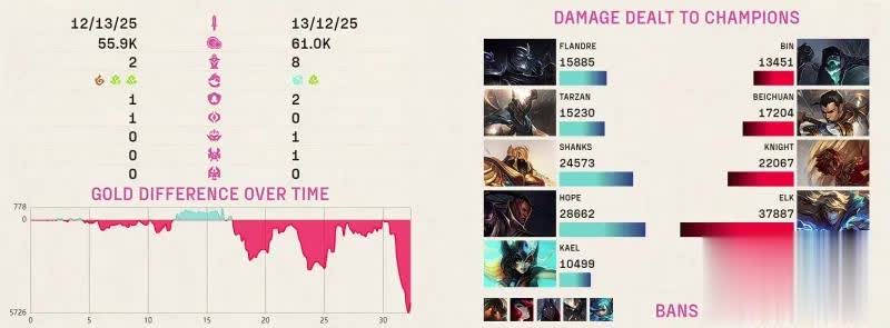 本局BLG通过Beichuan赵信的节奏带动和Knight岩雀的战术压制掌控全局,最终以运营优势终结比赛。