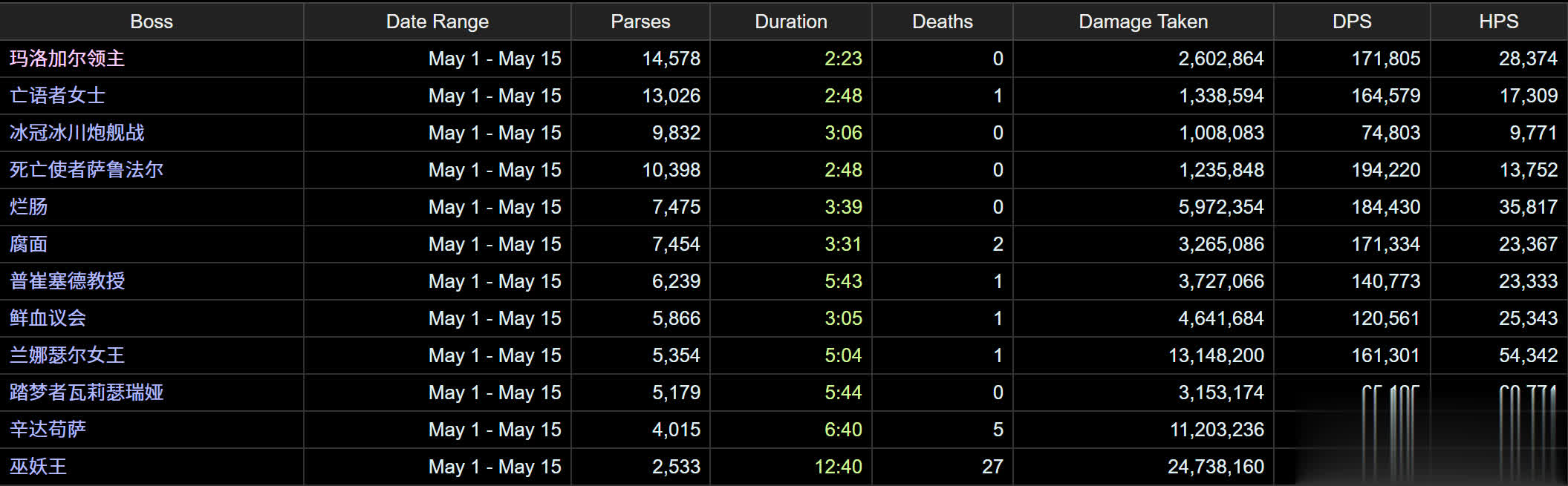 还有一个因素便是很多玩家其实不会将失败的战斗记录上传到WCL,农工不知道大家会如何进行决定,至少农工跟自己熟人打本的时候一般不会将失败的数据传到WCL去,所以会导致了一种原因便是很多失败的战斗记录并没有出现到WCL中,所以种种原因都拉高了ICC团本的通关率,不过这个通关率其实整体依旧偏低。