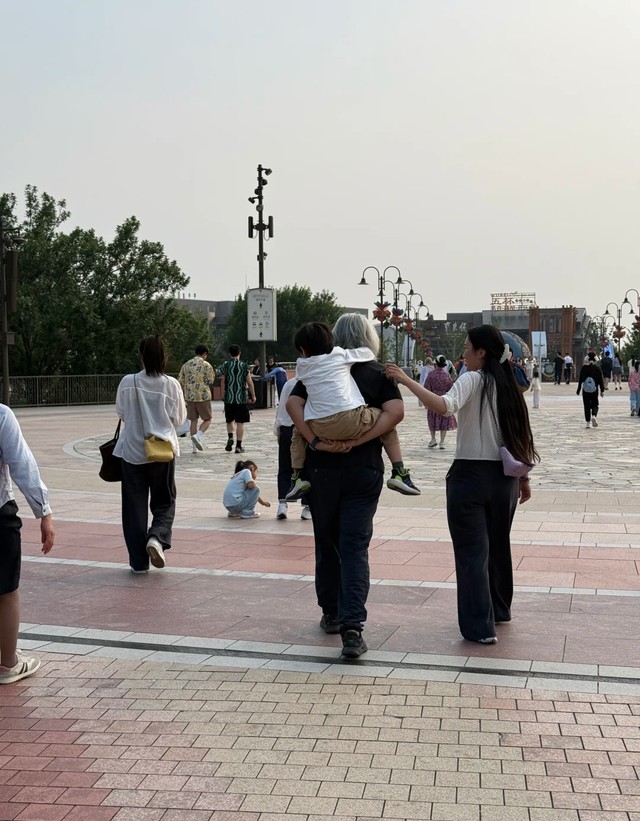 甚至在游玩的时候,还有网友拍到了张纪中背着孩子玩耍的模样。