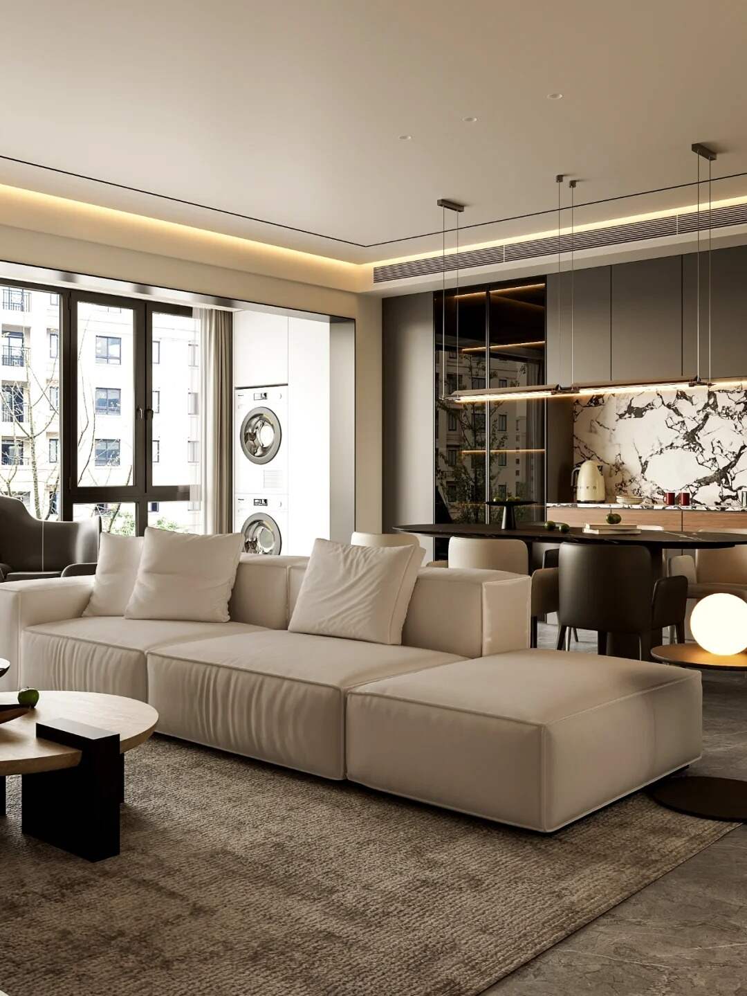一提到轻奢风,不少人就觉得肯定是各种奢华元素堆砌,贵得离谱呗。嘿,这可又是个误区啦!现代轻奢风格的装修,整体看上去虽然比较时尚和大气,设计感较强,品质感较高,但它可是去除了奢华、多余的装修元素,让家居装饰回归到生活本真的哦。就拿郭女士家89m²的现代轻奢风格的房子来说,它并不是那种张扬的奢华,而是通过室内的灯饰、家具等各种软装,来达到一种低调奢华上档次的感觉。在选择家具款式时,也偏向于高端而又低调的家具款式,相当于在现代风格的基础上,又添加了轻奢元素,使房子既实用又有质感,提升了居住者的居住环境和居住感受。这哪里是一味地追求奢华呀,明明是在追求一种生活品质的提升嘛。