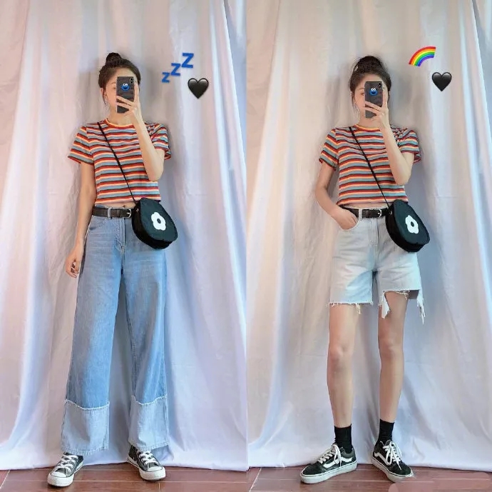 很多人觉得,提高腰线那是高个子的事儿,咱普通人尤其是小个子,折腾这干啥呀?这可就大错特错啦!值得注意的是,对于大多数小个子身材来说,提高腰线比例简直就是变时髦的关键一步啊!就好比黑色短袖T恤搭配浅色休闲西装裤,把上衣全部塞进裤子里面,瞬间就能提高腰线,这效果,那叫一个显高挑,腿部线条也被拉长了,整个人的气质立马不一样了呀。而且,像浅蓝色针织短袖这种色调,对于肤色暗沉的朋友也相当友好,还能把肤色提亮好几个度呢。您瞧瞧,提高腰线这一招,不管您啥身材啥肤色,都能给您的时尚感加分不少,谁说这只是高个子的专利啦?难道普通人就不能靠这招在时尚界闯出一片天啦?