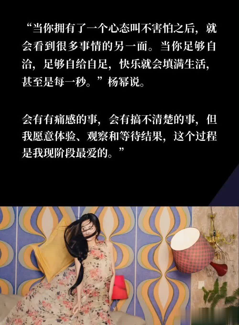 杨幂的见解让霸王茶姬都站出来力挺了,值得好评。在很多人心目中,她就是一个集齐美貌与才华的女子。很不做作,很有自己的个人态度,所以才能在娱乐圈这么多年没有因为言语翻车过的人,一直很正能量,虽然总是被外界误解,但她用作品和实力说话。