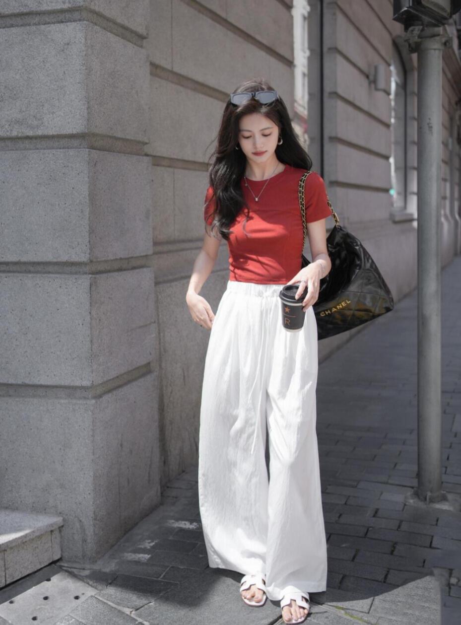 首先,白色可是夏天的“降温色”。想象一下,夏天骄阳似火,你穿个深色裤子,那感觉就像裹着一层棉被在太阳下烤,热得你怀疑人生。但要是换上白色阔腿裤,瞬间就有了一种清风拂面的凉爽感,这简直就是夏日救星啊!而且白色自带干净、清新的气质,穿上它,你就是街头那个“人间小清爽”,瞬间从人群中脱颖而出。