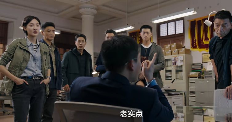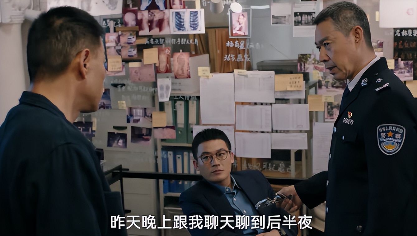 镜头营造出高智商角色把控全局的氛围,又通过警方与男主的碰面,带动戏剧张力。