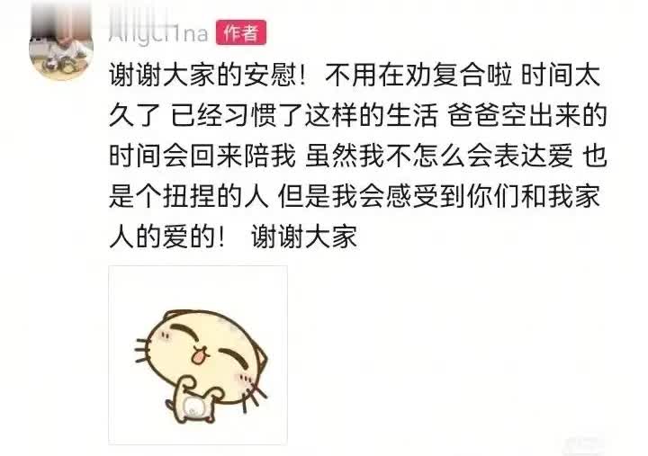 甜馨在社交平台评论区回复网友劝父母复合的留言,字里行间满是释然与坚强,这番回应看出出她对现实的坦然接纳,一时间无数网友为之动容,直呼“心疼又欣慰”。