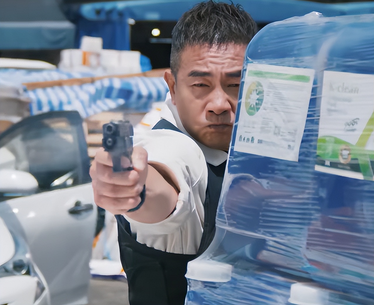 新剧中他扮演警察何浩辉,面对恐怖袭击,他躲在掩体后面举枪回击。