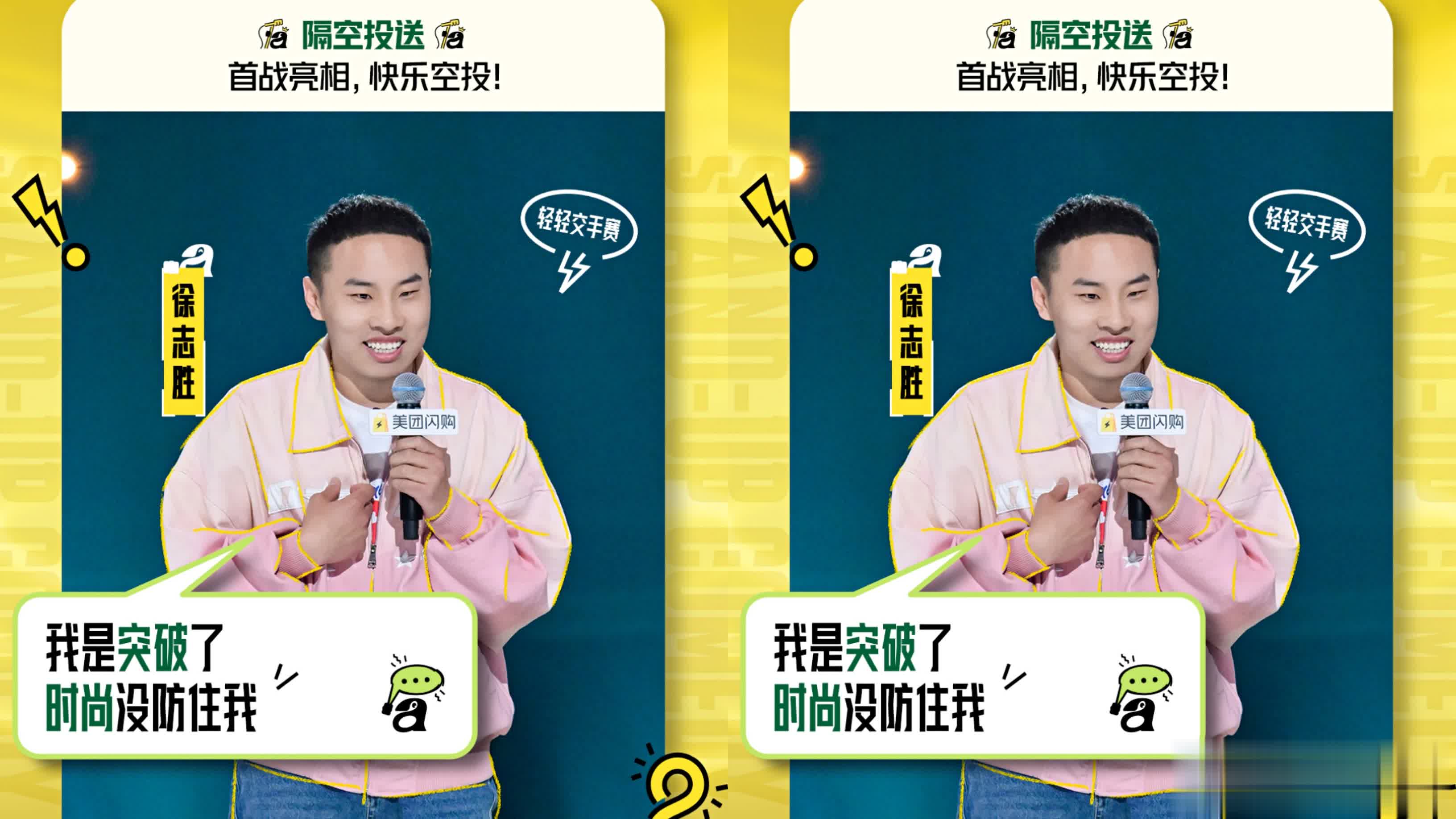 仍然是拿自己的长相开玩笑。还拿造型师的话来加深观众印象。更是成功跟张新成陈都灵对比。