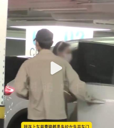 画面中显示:曹骏正处于和女友热恋的状态,即便逛个街也是牵着手,大热天里一刻也不松开,到了车子旁边,曹骏贴心的打开车门,小心翼翼的让女友先上车,生怕磕了碰了。