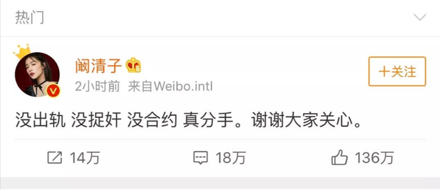 分手的那段时间,阚清子消失在公众视野里,再出现的时候,她瘦了十几斤。