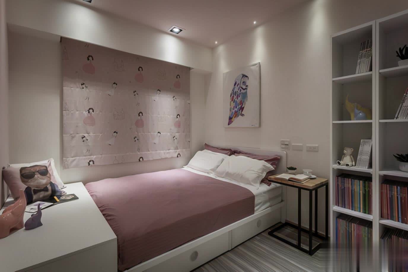 因为孩子是女儿的缘故,儿童房选择了粉色系作为主色调,显得很是梦幻。让旁边也配有书柜和小几便于收纳和临时放置。