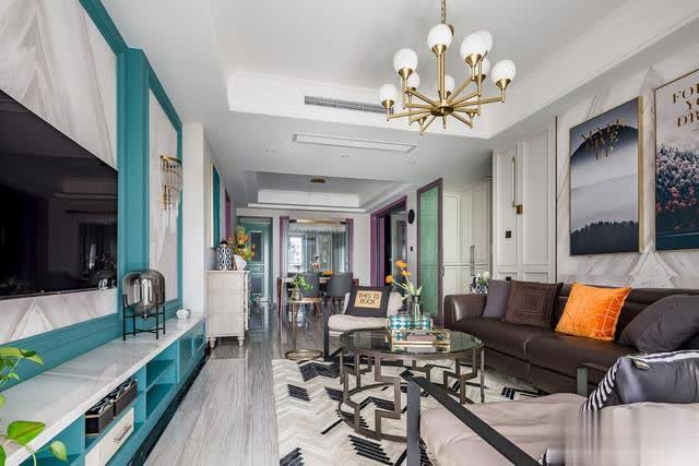 本案这个混搭空间的一个特点就是优雅而浪漫,融合了法式的浪漫抒情、欧式的典雅文艺还有美式的简约阔朗,是现在更多人的首选。房主就希望能够打造一个兼具优雅表现和温馨活泼的家居氛围,为此设计师在房屋当中融入大量的色彩表现,通过反差明显的色调阐述理想的艺术表达。