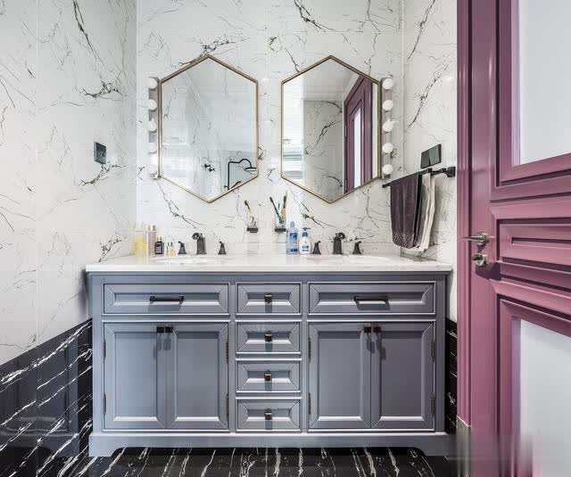 卫浴空间用不同的石材效果做了一个层次分离,让整体空间的层次表达更加分明,每一个相对独立机能都能够得到明确的划分。