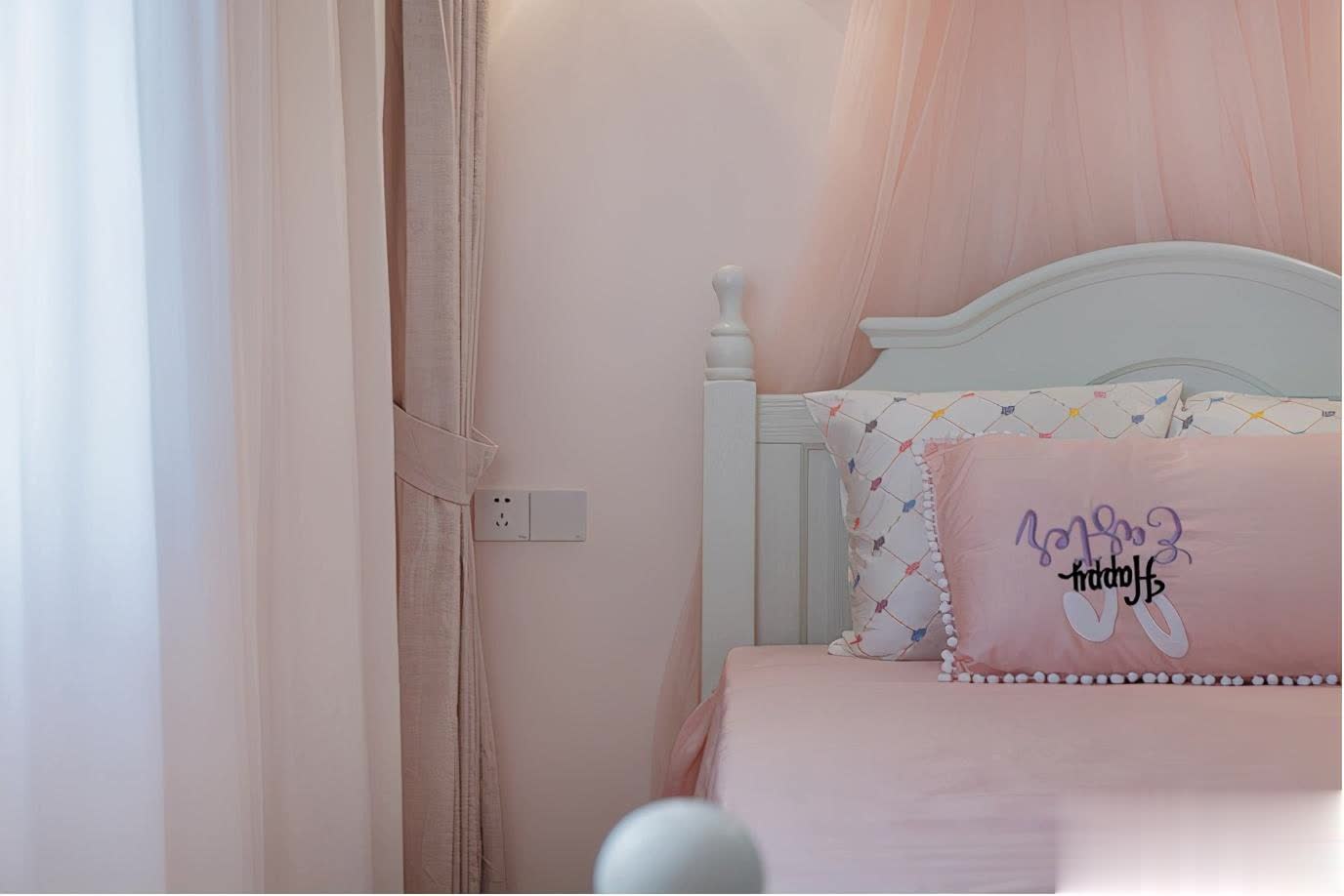 家里的小公主钟爱粉红色,也因此将她的房间用淡粉色涂抹,打造了一个梦幻的粉红色主题家居。象牙白的床组加上粉色的墙面和软件构成了一个极富童话想象的空间。