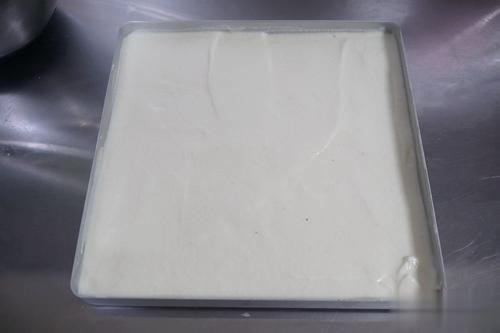 10、将蛋糕糊倒入(法焙客)2828阳极烤盘内,烤盘内提前铺上配套的油纸;表面的蛋糕糊用刮板刮平;