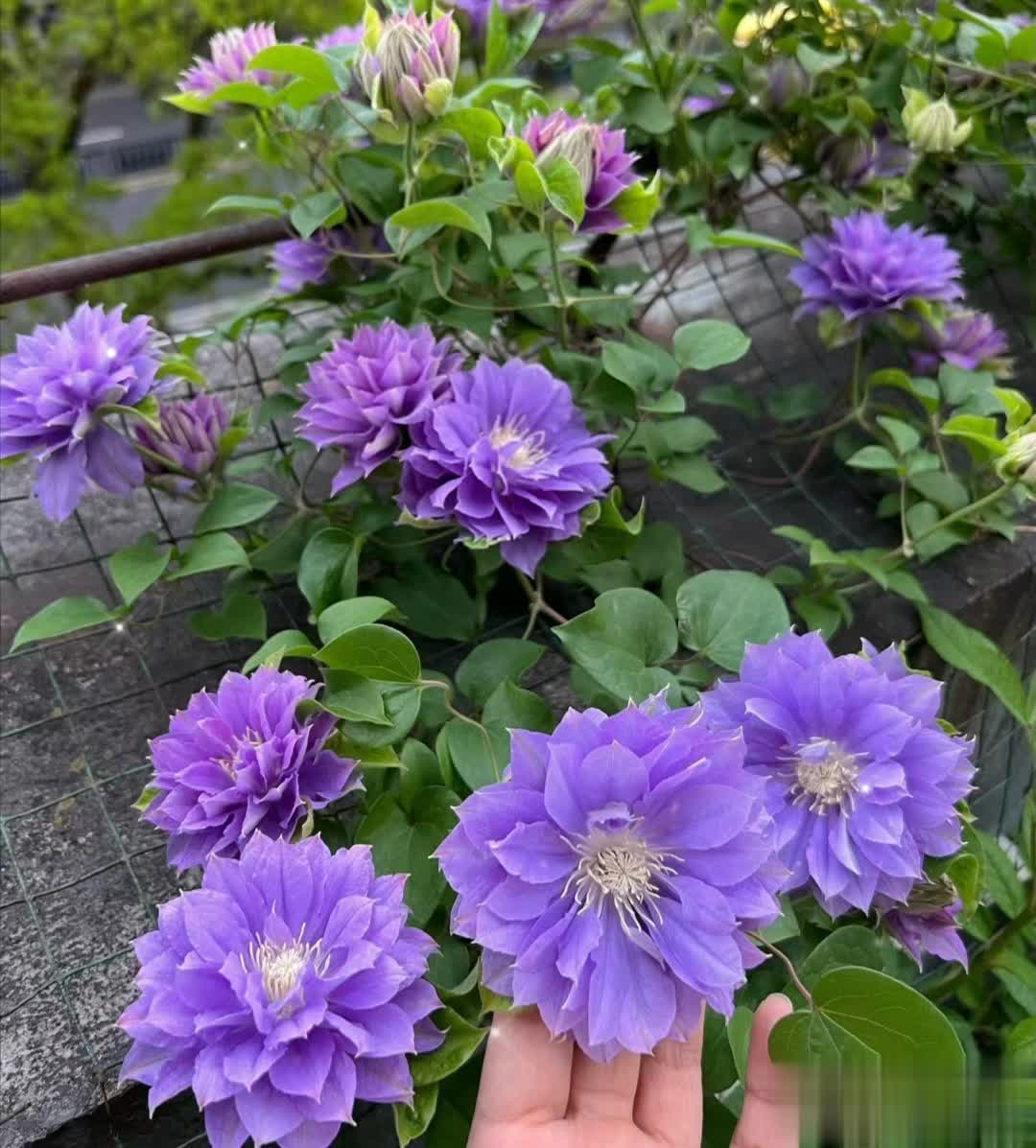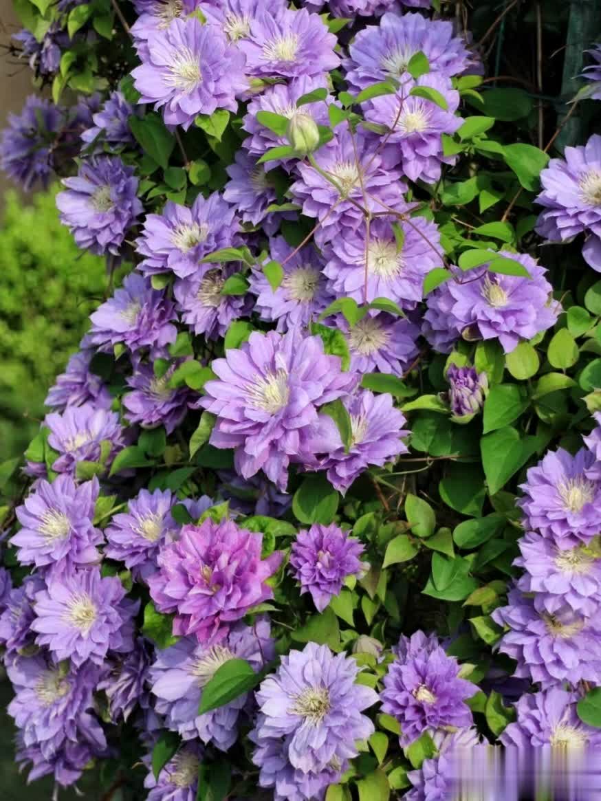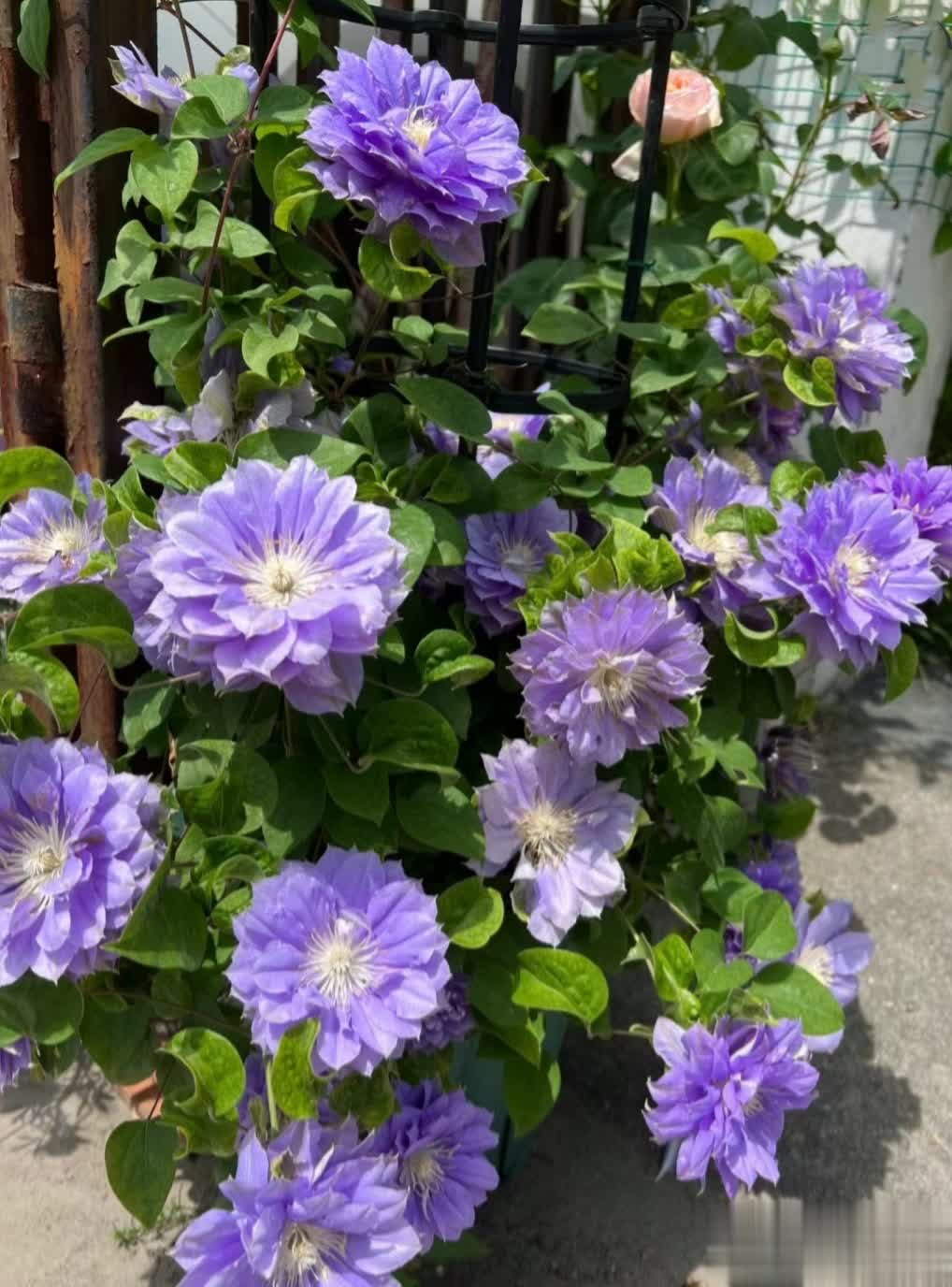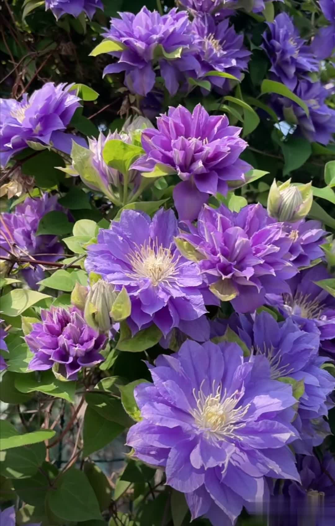 通过合理养护,重瓣铁线莲可呈现繁花似锦的效果,是庭院和阳台的绝佳选择。