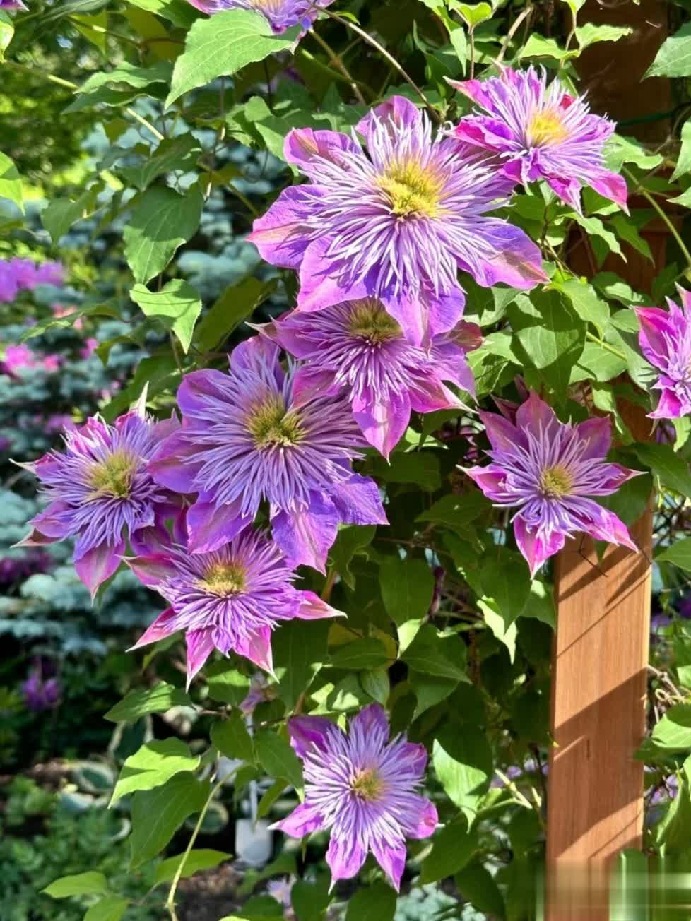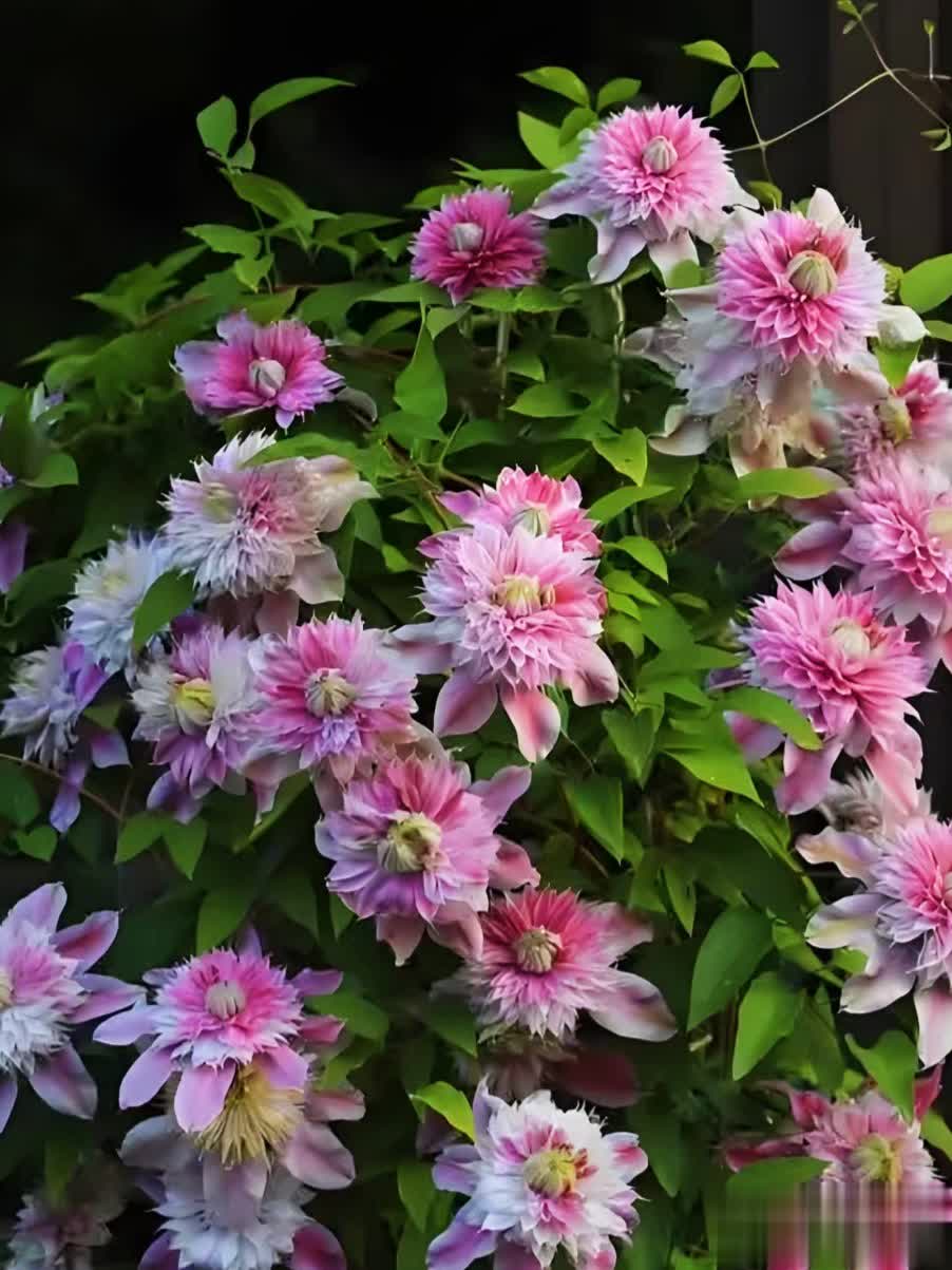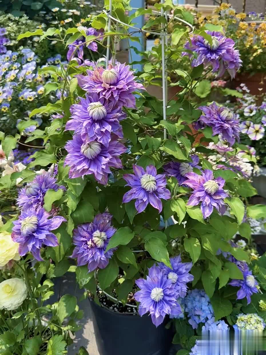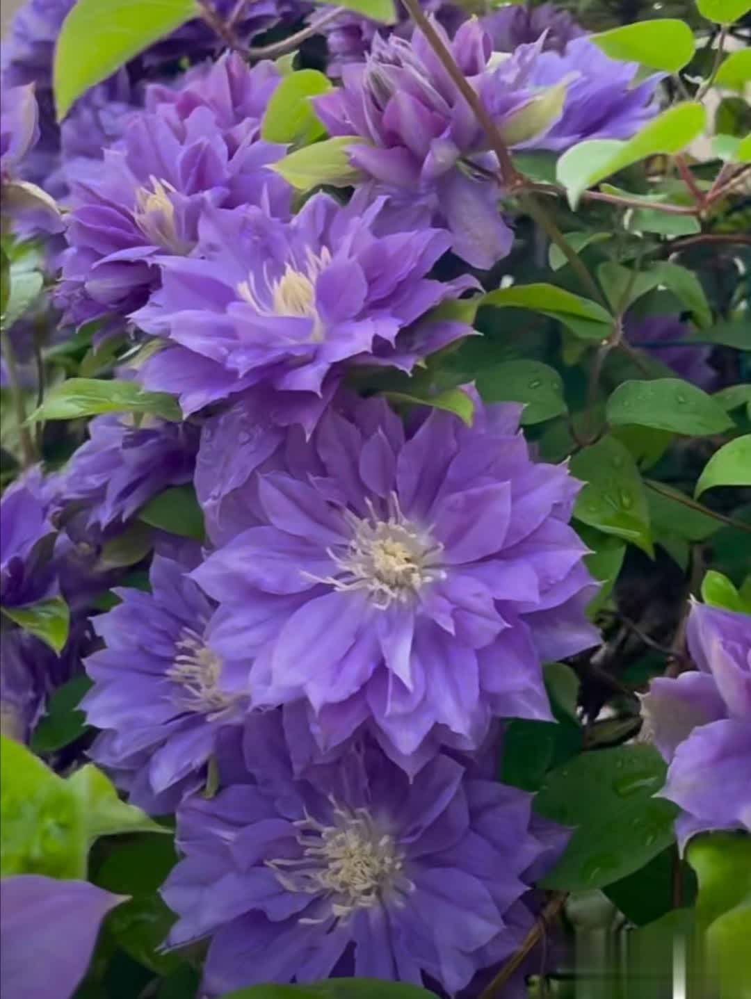 通过合理养护,重瓣铁线莲可呈现繁花似锦的效果,是庭院和阳台的绝佳选择。