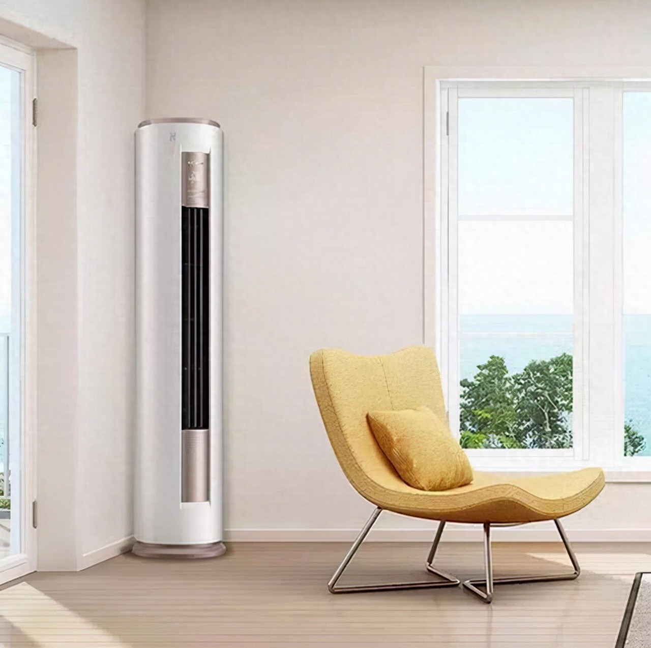 立柜式空调的时尚外观大气,出风强劲,制冷和制热的能力比强,比较适合面积比较大的大客厅、办公室、商店、餐馆等使用。立柜式空调采用落地的安装方式,会占用一定的室内空间,通常会安装在角落里。