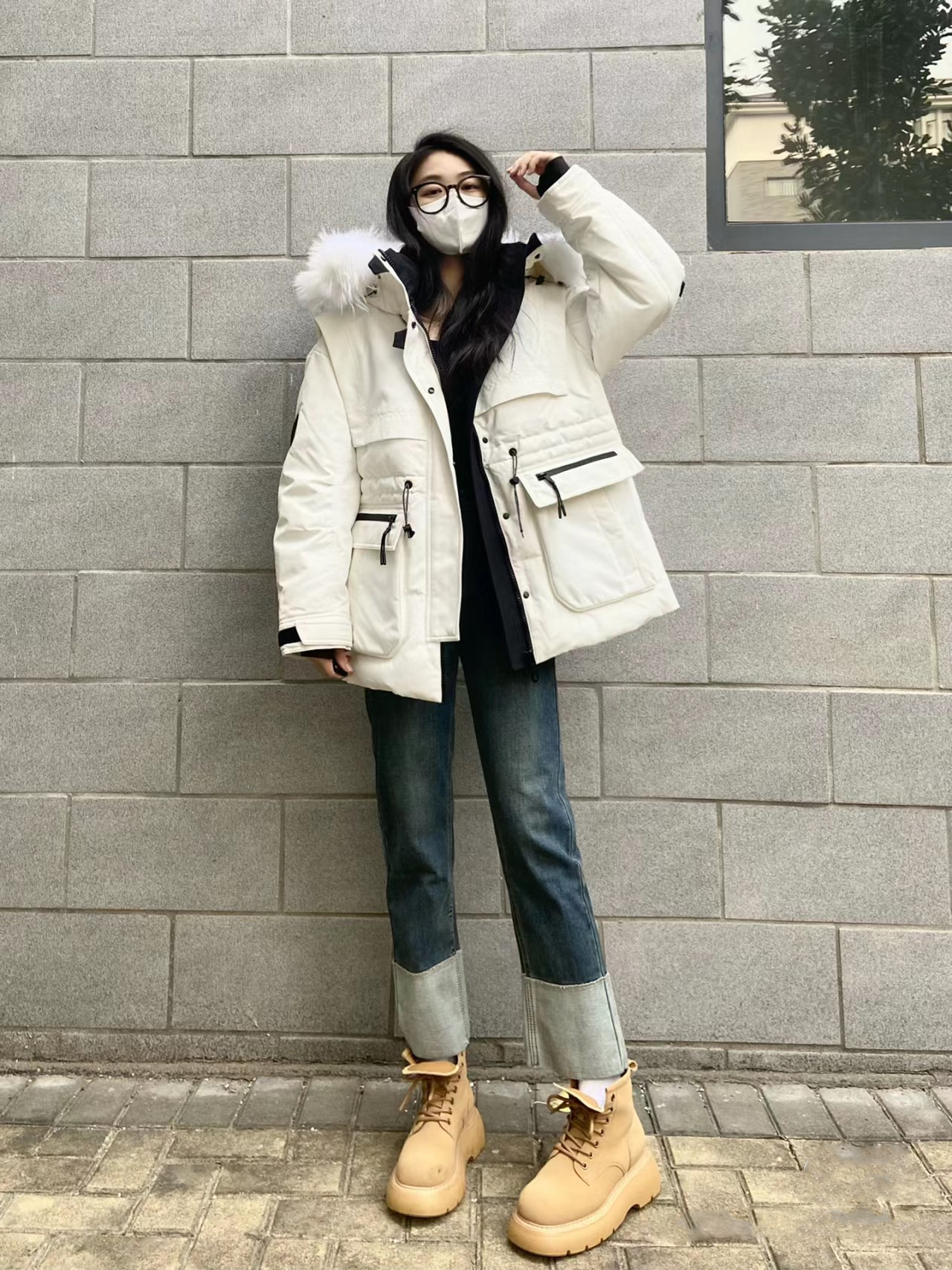 关于派克羽绒服的搭配,上海女生做了很好的示范,将派克羽绒服与大黄靴组合在一起,再搭配不同款式的裤子,呈现出来的造型又美又飒,既能满足基本的保暖需求,也能展现出时髦感!