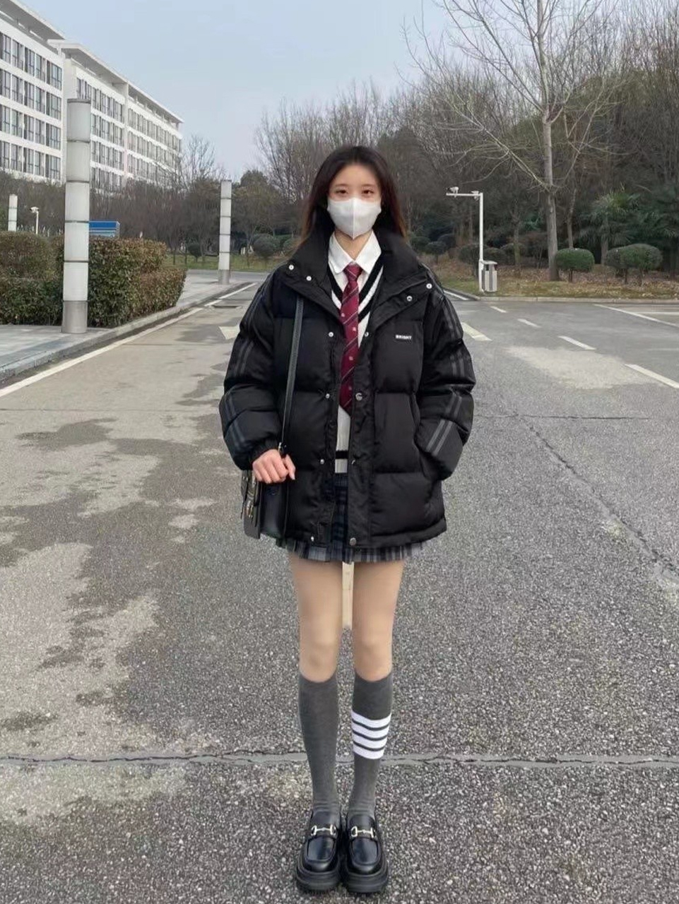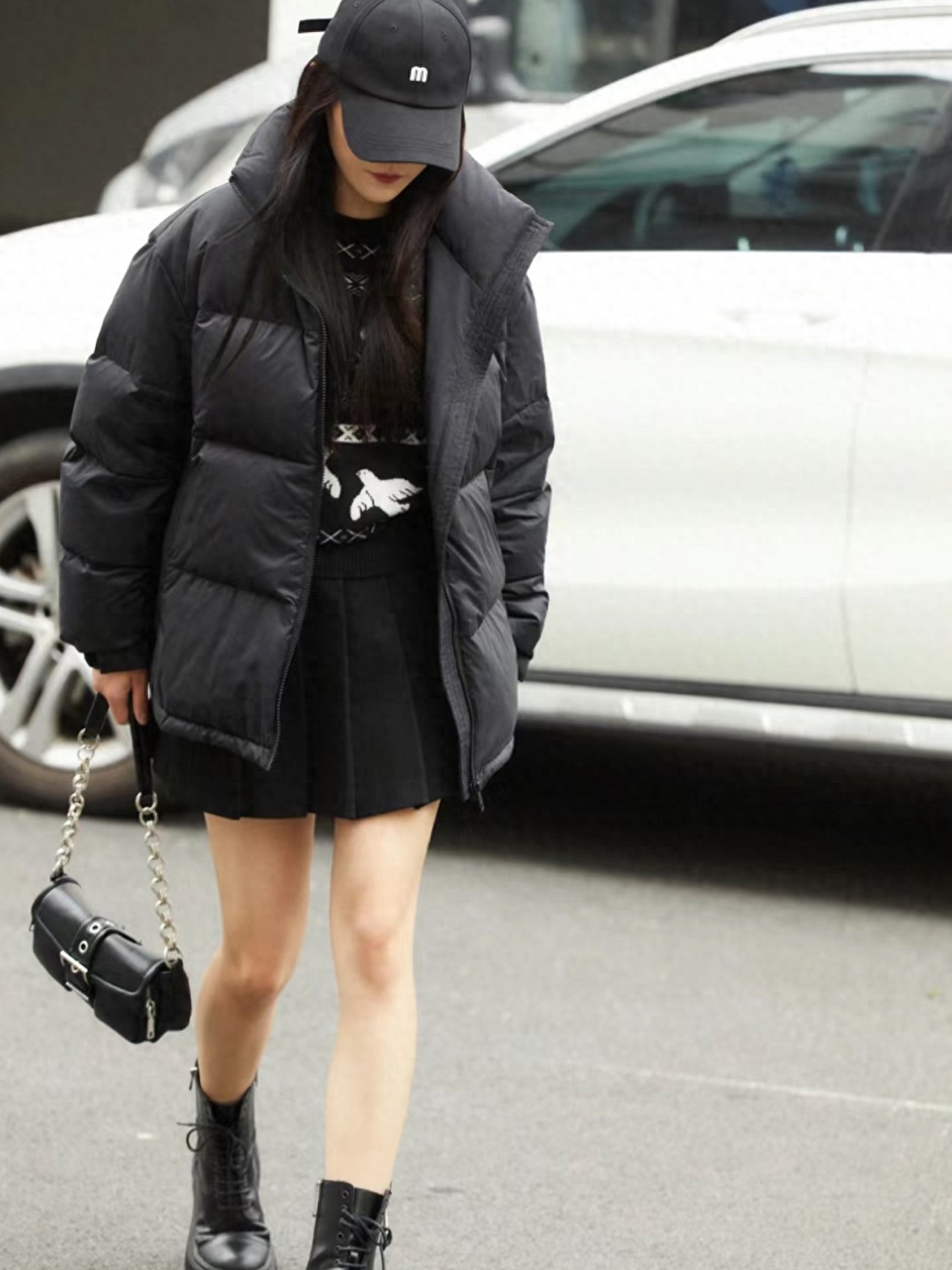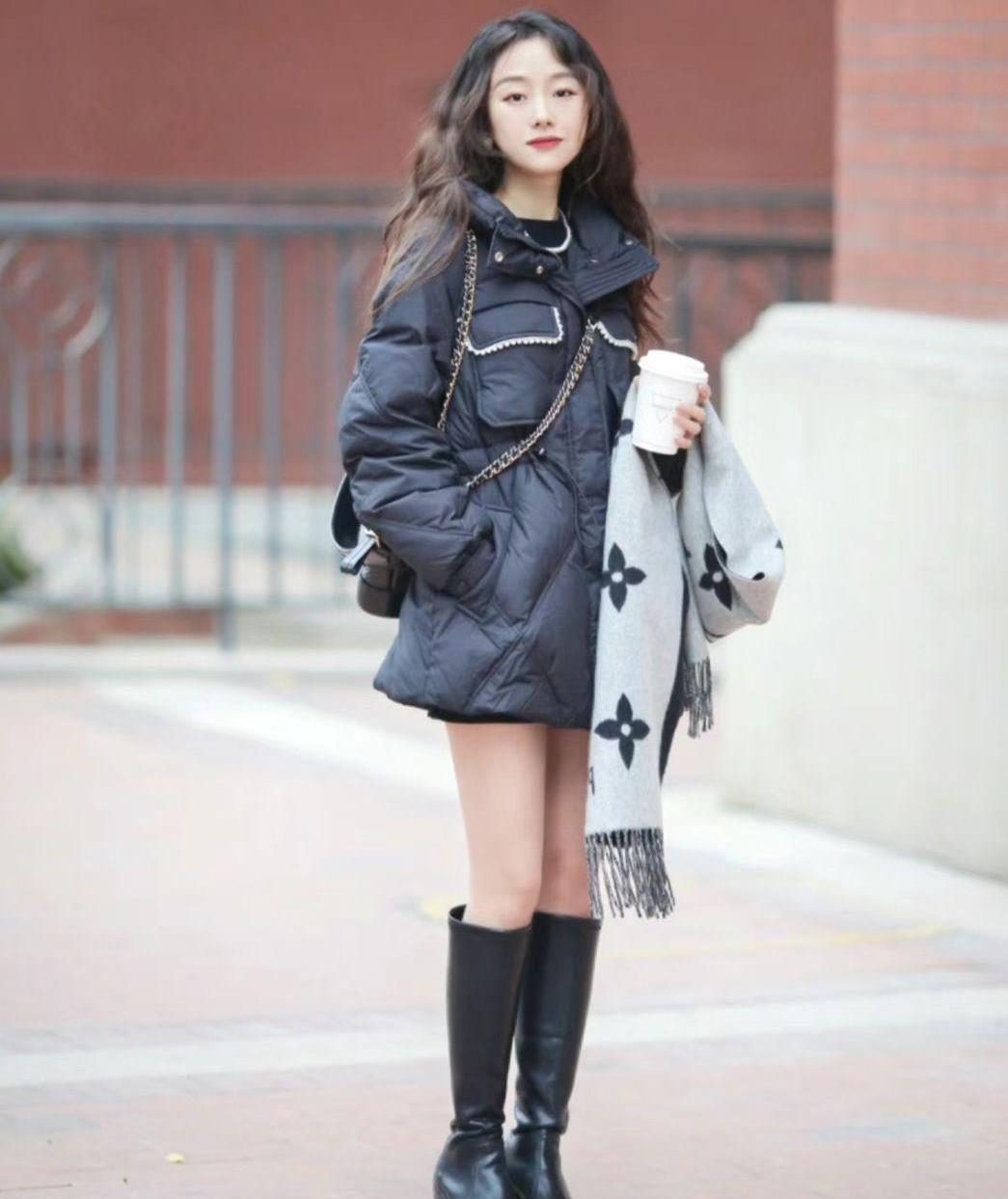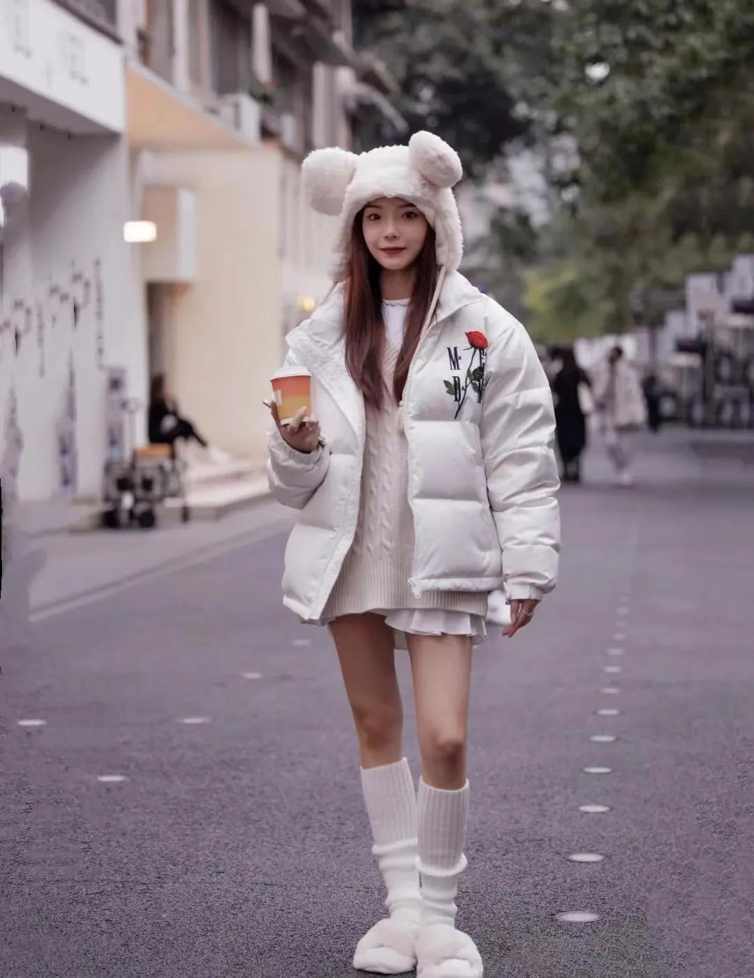 冬天服装选款这一款,本身就非常受限,考虑到保暖问题,因此很多人的首选衣服便是羽绒服。而在搭配上,羽绒服配直筒裤、阔腿裤太过千篇一律,反之“下身失踪”露出腿部线条的穿法,既不会“撞裤”,也不会让造型显得太过单一,时尚感拉满。