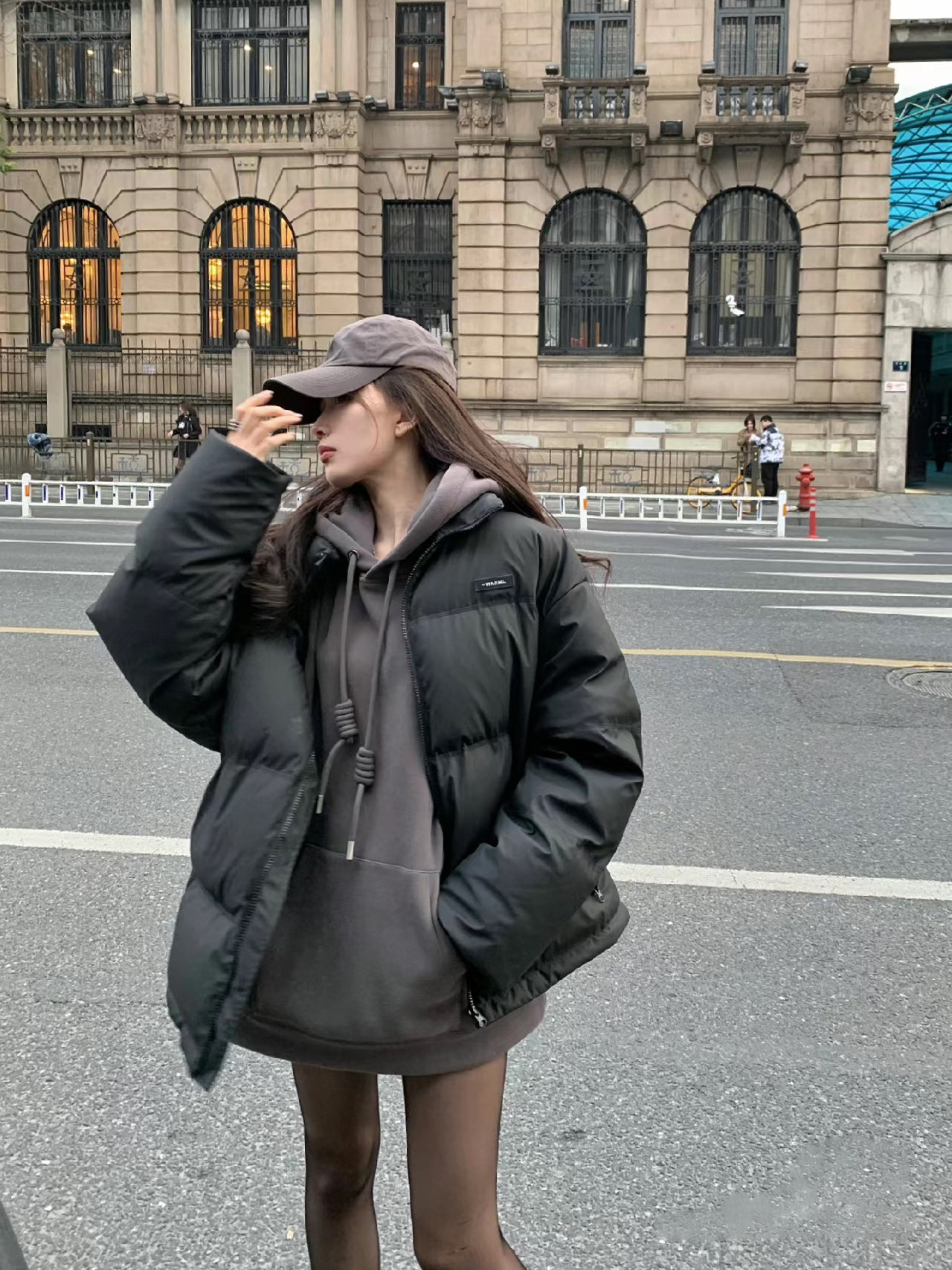 穿羽绒服玩“下身失踪”穿搭,最直接的方式就是内搭卫衣,其长度要能够遮住臀胯,做好重要位置的遮掩,羽绒服长度尽量比卫衣短个1-2寸,便于凸显造型层次。