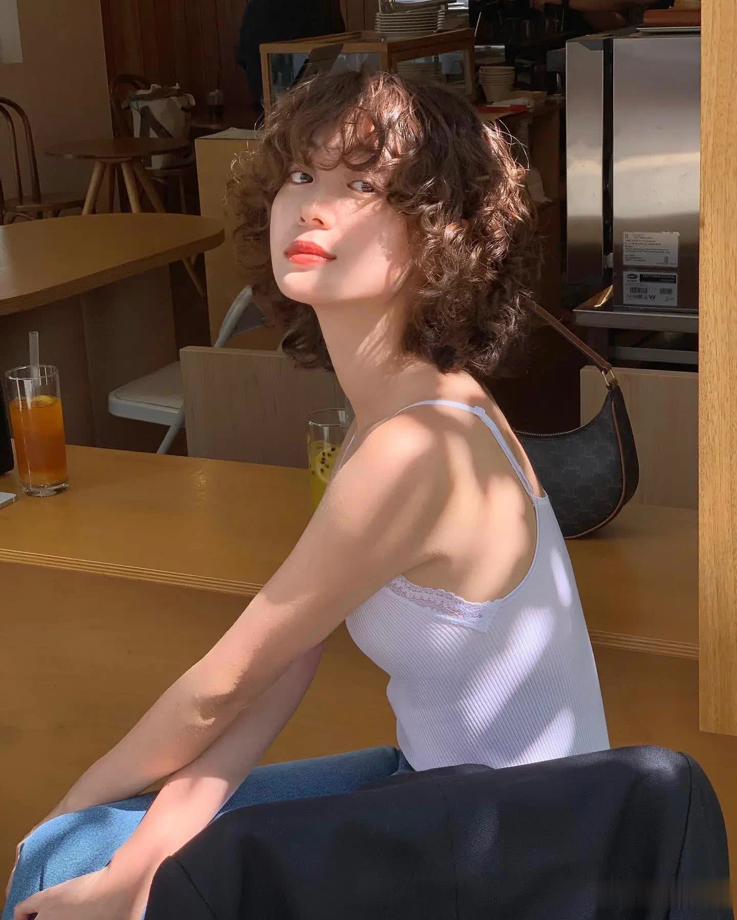 齐脖羊毛卷,从名称可知,头发长度大概在脖子位置,且呈现出羊毛般的卷曲状态。