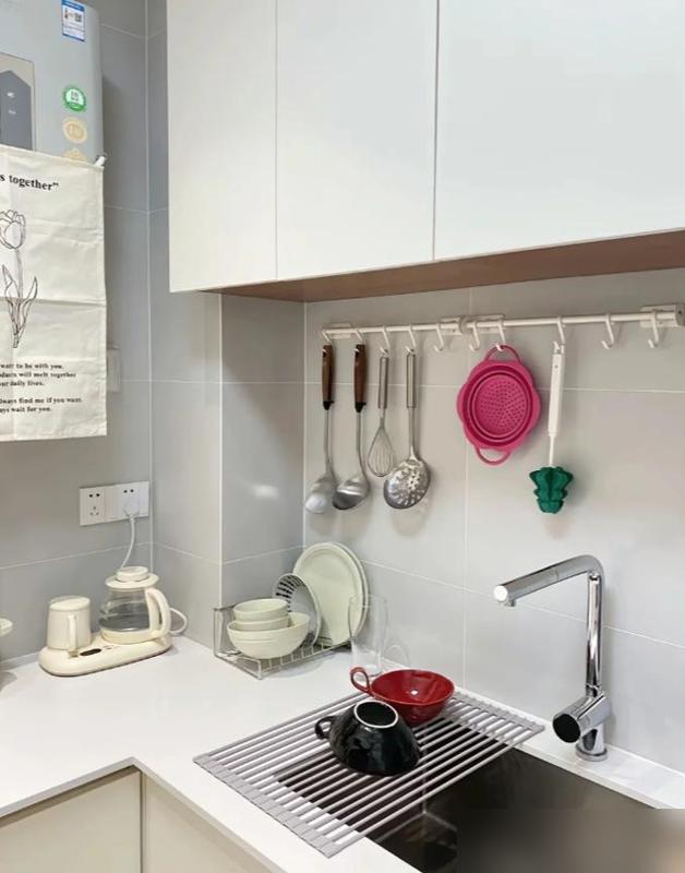 关键是不用打孔钻墙,想换布局随时调整,对小厨房太友好了。