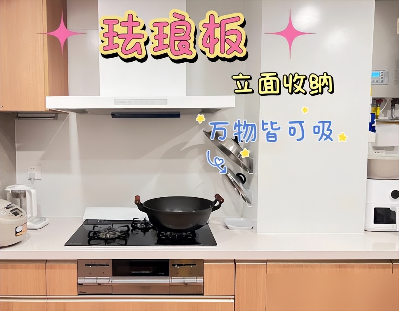 现在锅铲调料罐直接"啪"吸上墙,连电子菜谱都能磁吸悬空,做饭时瞟一眼特方便。