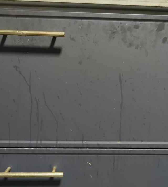 掌印油渍糊在门上,湿布擦完留水痕,干布擦完起毛絮。
