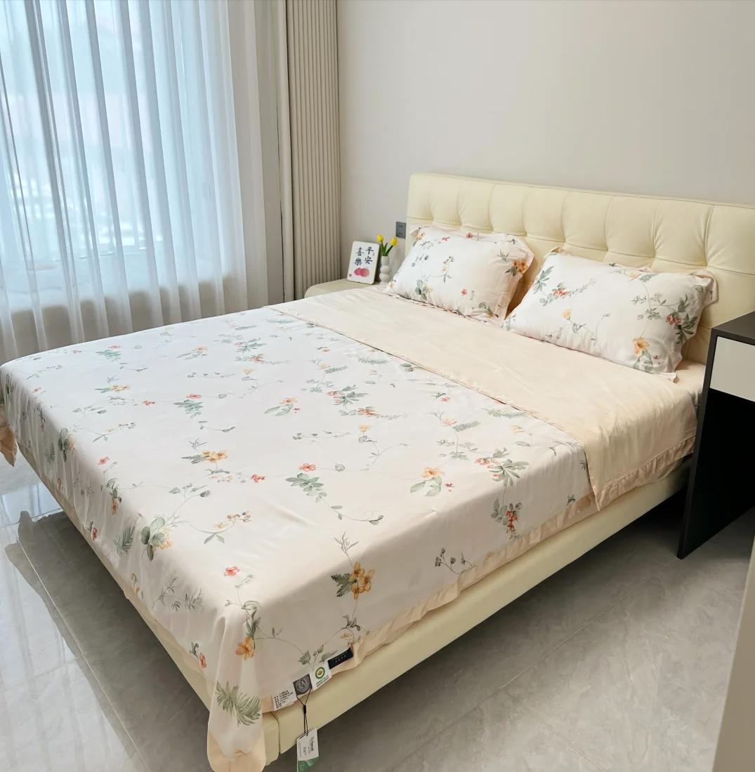 主卧室的设计以简约而优雅为主。四周的边吊设计增添了房间的层次感,纯净的白色墙面带来舒适和宁静的感觉。窗前安装了双层窗帘,能够灵活调节光线,同时营造出轻松的休憩氛围。