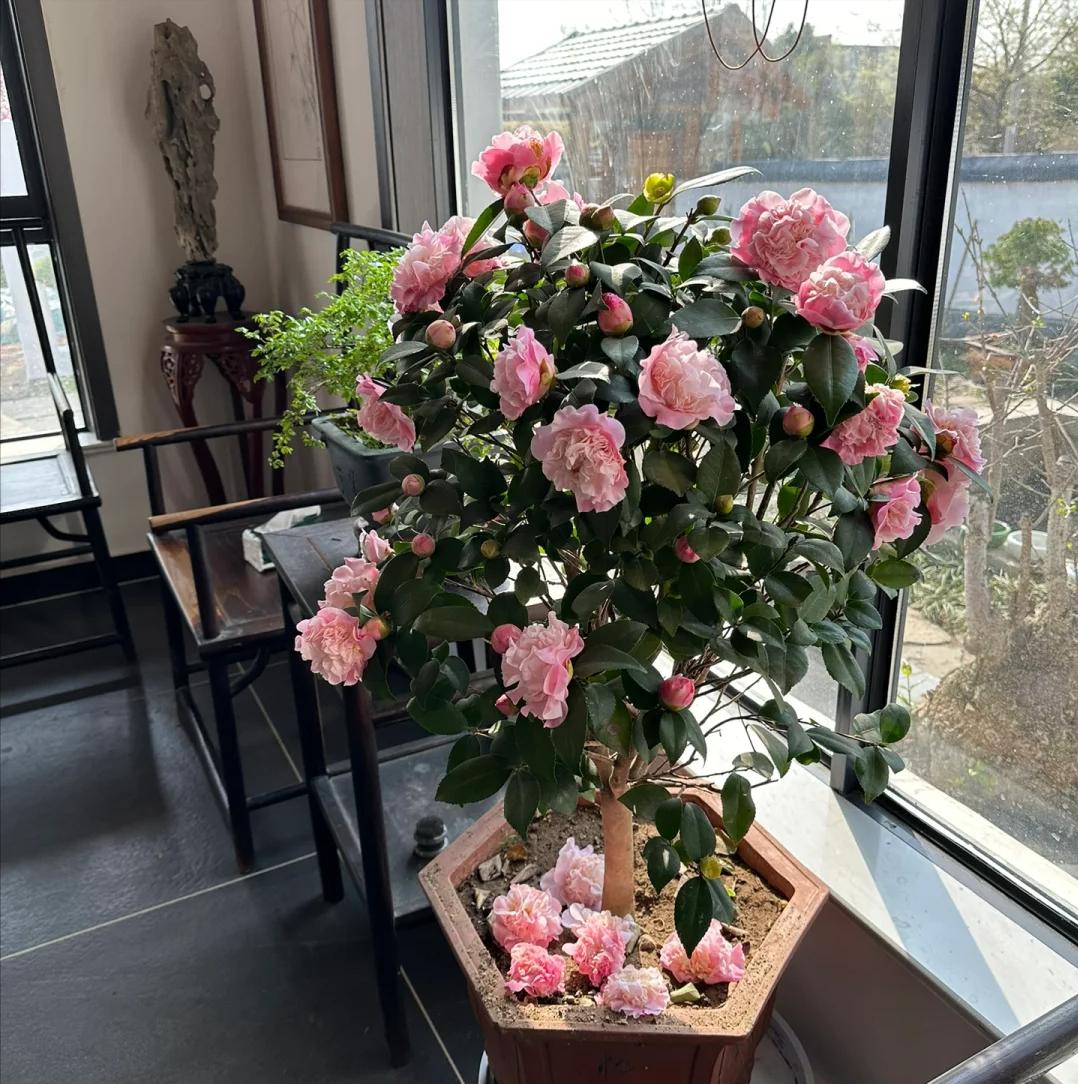 茶花是一种美丽且安全的室内植物,它的花朵艳丽,叶片光滑有光泽。茶花喜欢充足的光照,但避免强烈的直射阳光,适合放置在明亮的室内环境中。它对湿度有一定要求,喜欢湿润的土壤,但要避免积水,以防根部腐烂。茶花还需要定期修剪,保持良好的通风,这有助于防止病虫害。