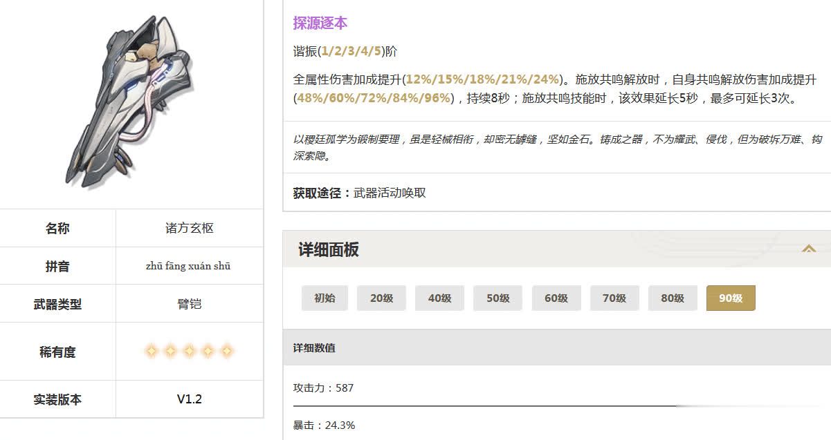 专武诸方玄枢,全属性伤害提升,释放共鸣解放提升后续共鸣解放伤害,放共鸣技能还能延长时间,相里要的共鸣解放会给多段强化共鸣技能,而伤害计算是算在共鸣解放中的,自然是最适配相里要的武器,只要开解放就能全程覆盖基本永驻。