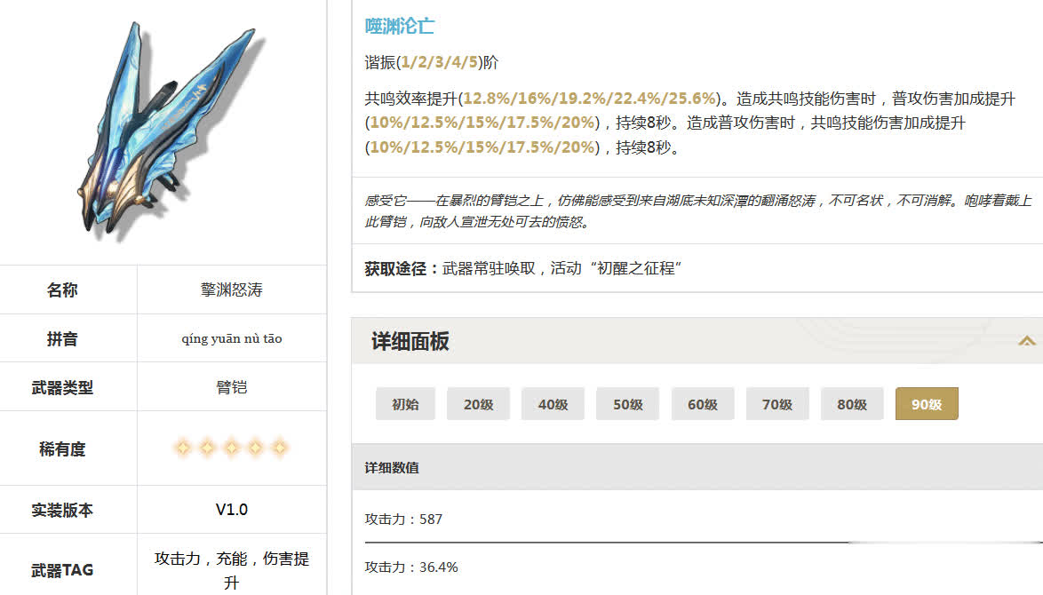 臂铠五星这边就三个,相里要专武,常驻臂铠,还多了个洛可可专武,洛可可专武加成全部都是重击伤害加成,相里要用不上,而常驻臂铠擎渊怒涛白值还不错,普攻伤害加成提升和共鸣技能伤害加成相里要也可以吃到,共鸣效率提升也能进一步优化相里要的循环手感,是专武的首选下位替代。