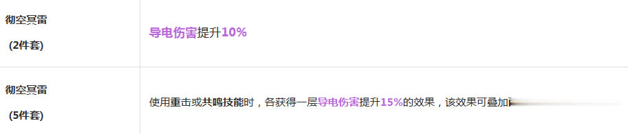 效果能沾点边的凌冽决断之心,因为加成是冷凝的也没办法用,所以还是用我们的老雷套,彻空冥雷,重击或共鸣技能能够获得可叠加两层的导电提升15%效果,C4选择梦魇·云闪之鳞,提升导电伤害和共鸣解放伤害,很契合相里要,记得主词条暴击爆伤。
