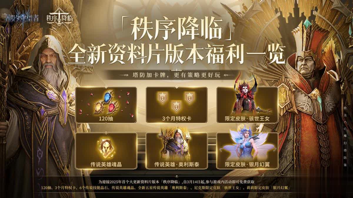 2025 年开年,策略手游界的一颗重磅炸弹即将引爆!《潮汐守望者》将迎来超震撼的“秩序降临”资料片版本更新,3 月 19 日正式拉开帷幕。这次更新,不仅有全新阵营和强力英雄登场,玩法深度大幅提升,3月14日起,登录即送120抽、白嫖3个月月卡,尼克斯和莉莉两款限定皮等海量福利拿到手软,绝对是塔防党和卡牌爱好者的狂欢!