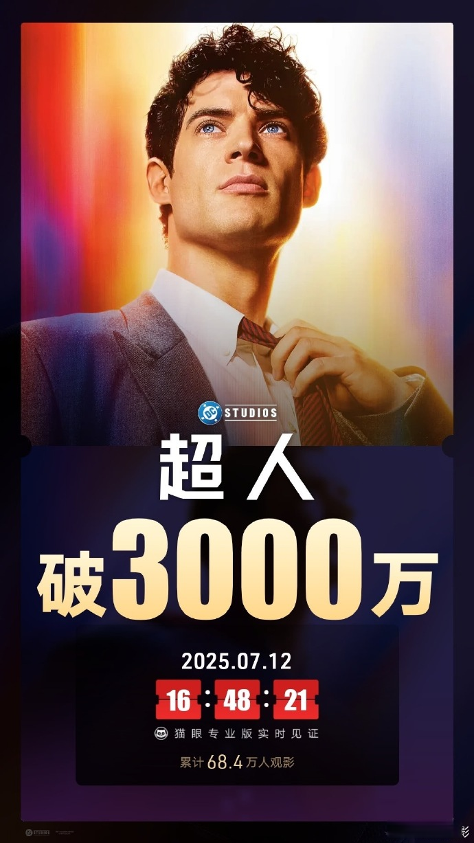 暑期档电影《超人》国内上映2天,但票房才突破3000万元,累计68.4万人观影。