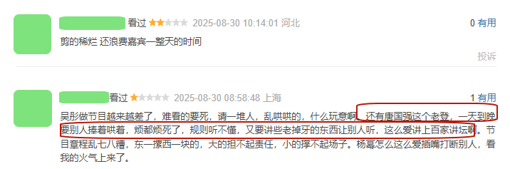 更别提“最大败笔”唐国强,和别人玩不到一块去就算了,还总是倚老卖老,再加上喜欢抢镜头的金靖、没啥存在感的宋亚轩,互动太尴尬了。