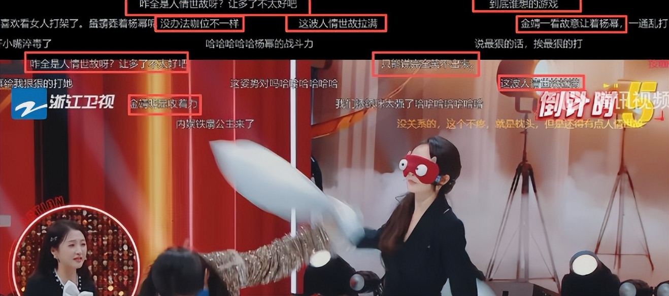 金靖倒是很“机灵”,和她对打的是杨幂,本期最大的咖之一,比赛一开始金靖直接蹲到了地上,之后也是象征性的挥了两下枕头,都没碰到杨幂。