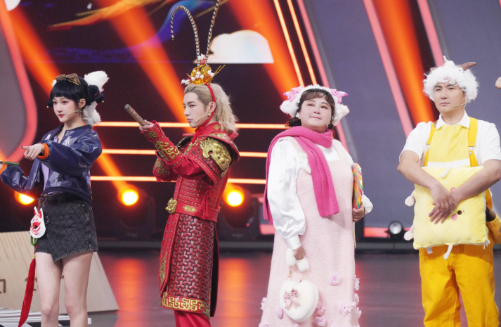 沈腾、关晓彤、杨迪几人的关键词是“唐朝”,复刻了电影《长安的荔枝》中主角骑马送荔枝的名场面。
