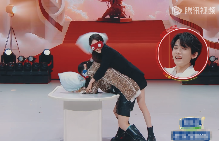 第二轮游戏也非常老套,简而言之就是嘉宾们蒙上眼睛互相抡枕头。