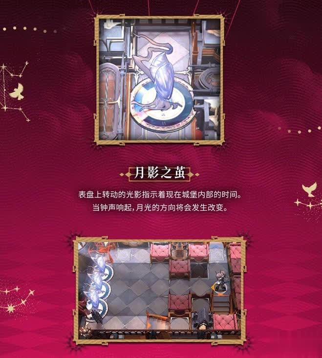 表盘上转动的光影指示着现在城堡内部的时间,当钟声响起的时候,月光的方向也会发生改变。这个也不难理解,就是给游戏增加一些不可控性,增加一些难度。