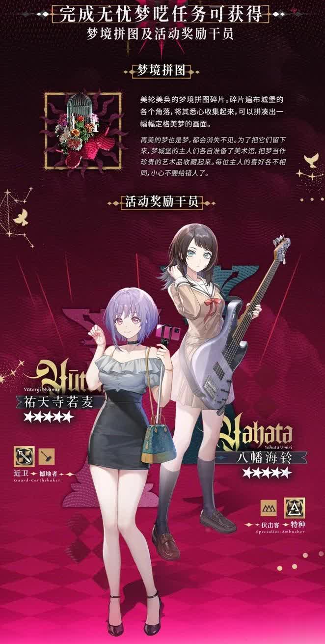 祐天寺若麦和八幡海铃是活动赠送干员,任务完成即可获得,这里不再多赘述,戒戒在之前的文章中也介绍过,这次的五星干员天赋都挺有设计感,A空气和大腿都值得点赞。